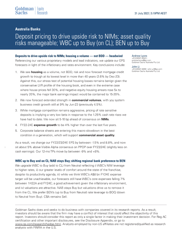 【Goldman Sachs】【20220731】o NIMs; asset quality risks manageable; WBC up to Buy (on CL); BEN up-29页