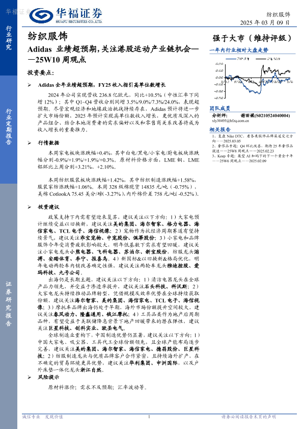 【华福证券】【20250309】纺织服饰25W10周观点:Adidas业绩超预期,关注港股运动产业链机会-14页