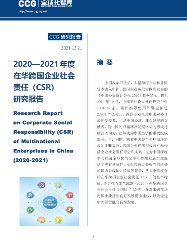 【全球化智库】【20211221】2020—2021年度在华跨国企业社会责任研究报告-53页