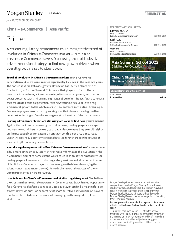 【Morgan Stanley】【2022】China - e-Commerce | Asia Pacific Primer-41页