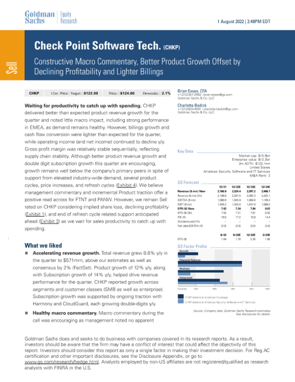 【Goldman Sachs】【20220801】Constructive Macro Commentary, Better Product Growth Offset by Declining Profitability and Lighter Billings-10页