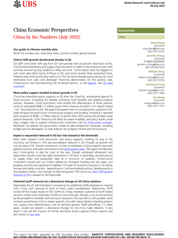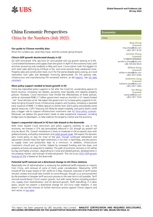 【UBS Securities Asia Limited】【20220728】China Economic Perspectives - China by the Numbers-21页