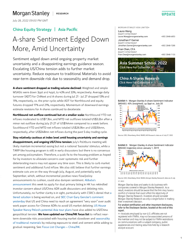 【Morgan Stanley】【20220728】中国股票策略:A股情绪趋弱-6页
