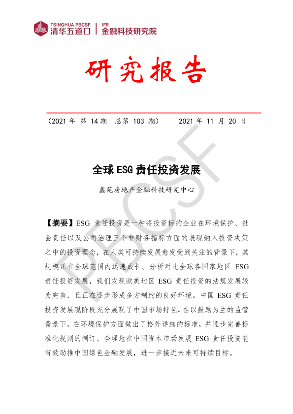 【鑫苑房地产金融科技研究中心】【20211120】全球ESG责任投资发展-43页