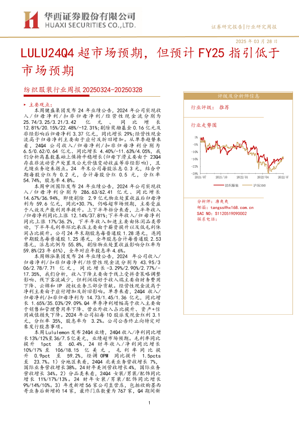 【华西证券】【20250328】20250328-华西证券-纺织服装行业周报:LULU24Q4超市场预期,但预计FY25指引低于市场预期-39页