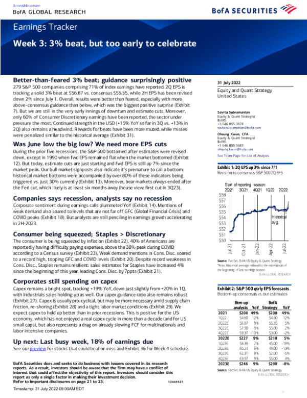 【BofA Securities】【20220731】Earnings tracker Week 3 - 3% beat, but too early to celebrate-24页