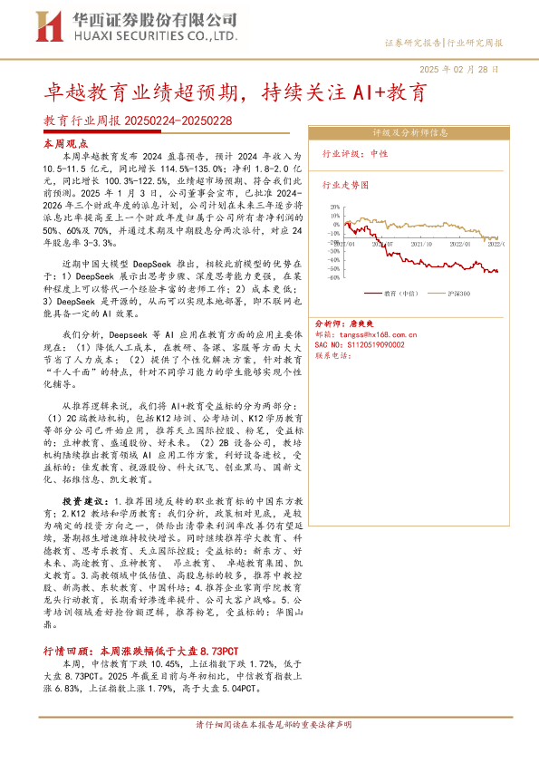 【华西证券】【20250228】20250228-华西证券-教育行业周报:卓越教育业绩超预期,持续关注AI+教育-16页