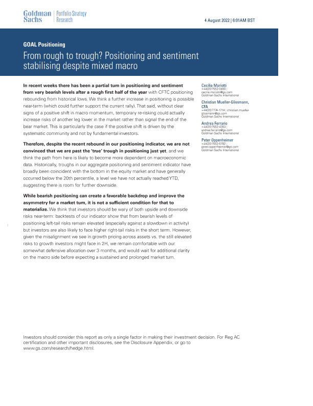 【Goldman Sachs】【20220804】从艰难到低谷?定位和情绪稳定尽管宏观经济参差不齐-30页