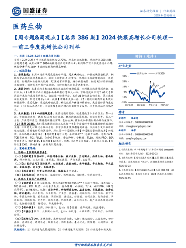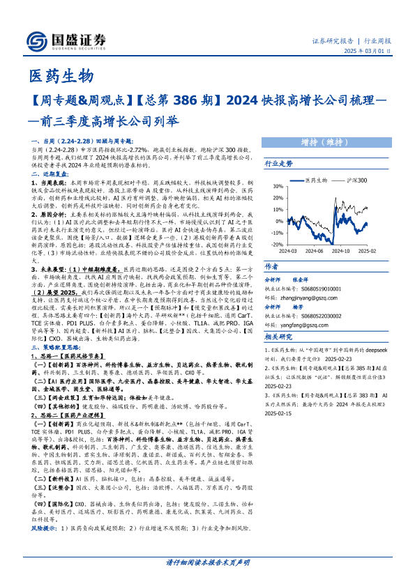 AI医疗 业绩快报 创新药 医药生物 投资策略