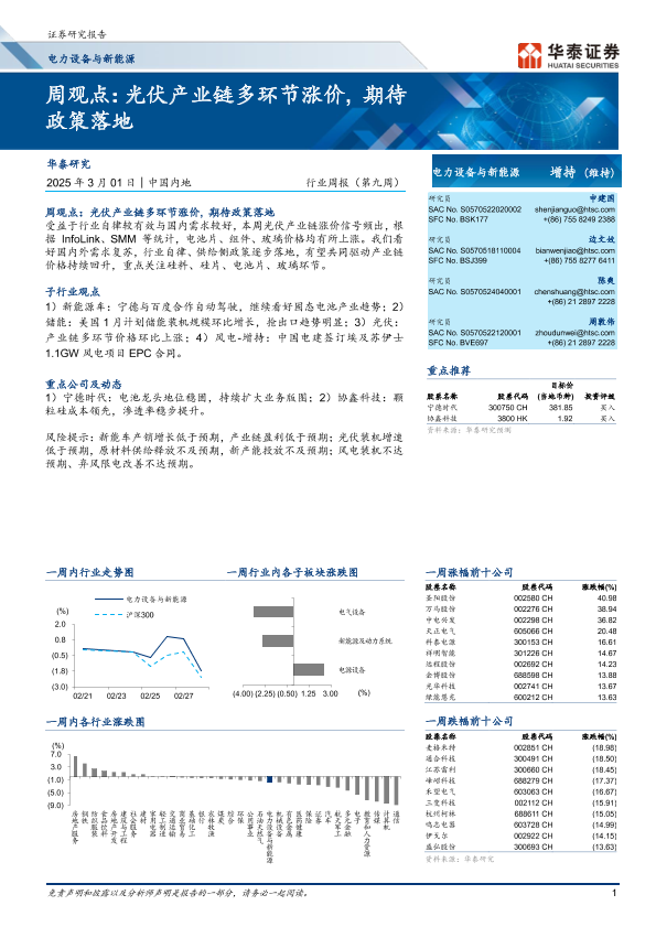 【华泰证券】【20250301】电力设备与新能源行业周观点:光伏产业链多环节涨价,期待政策落地-17页