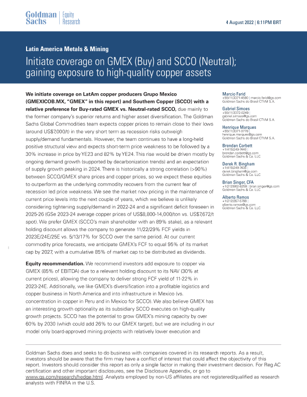 【Goldman Sachs】【20220804】X (Buy) and SCCO (Neutral); gaining exposure to high-quality copper assets-72页