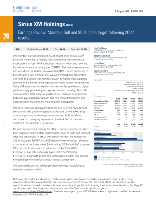 【Goldman Sachs】【20220802】Earnings Review Maintain Sell and $5.75 price target following 2Q22 results-11页