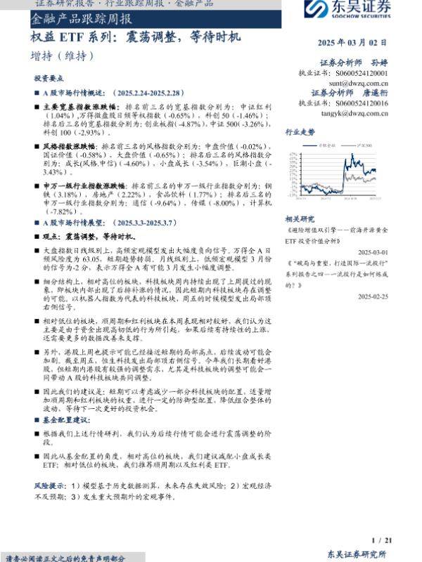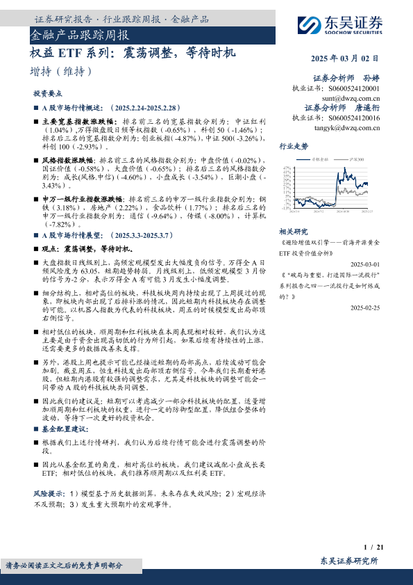 【东吴证券】【20250302】20250302-东吴证券-金融产品跟踪周报:权益ETF系列:震荡调整,等待时机-21页