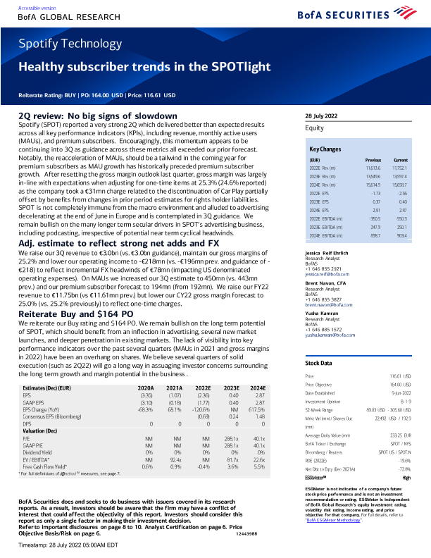 【BofA Securities】【20220728】Spotify Technology Healthy subscriber trends in the SPOTlight-10页
