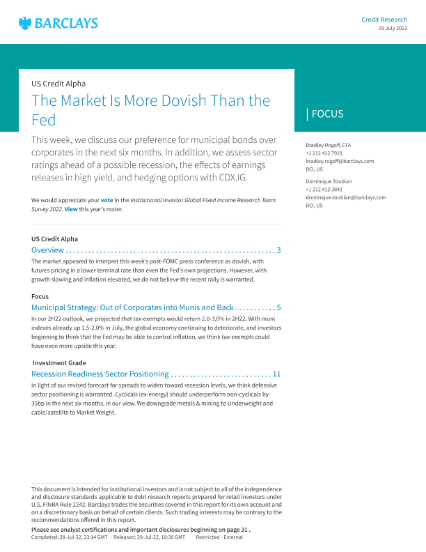 【Barclays】【20220729】The Market Is More Dovish Than the Fed-35页