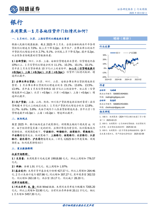 【国盛证券】【20250302】20250302-国盛证券-银行业本周聚焦:1月各地信贷开门红情况如何?-11页