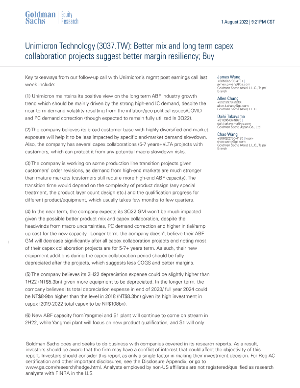 【Goldman Sachs】【20220801】g term capex collaboration projects suggest better margin resiliency; Buy-9页