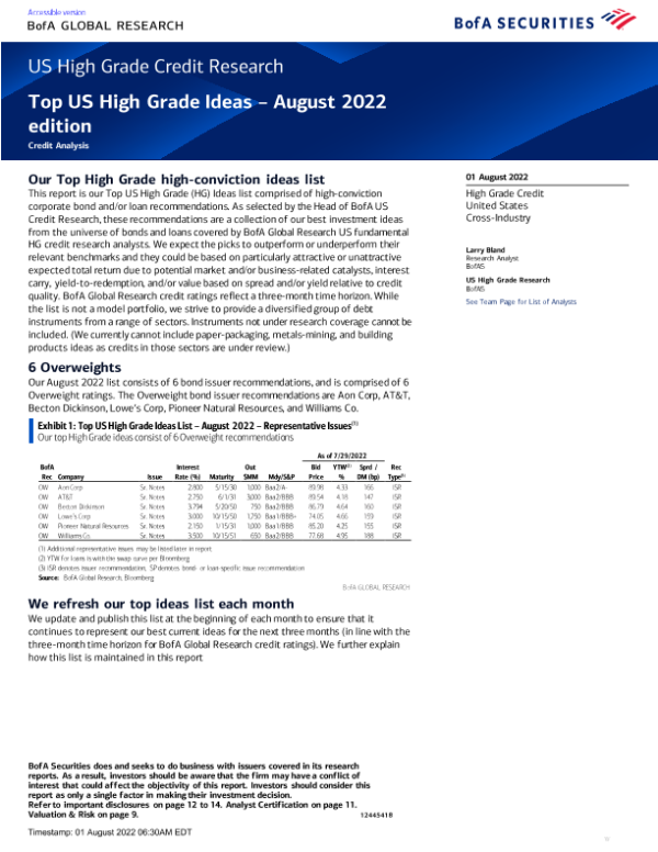 【BofA Securities】【20220801】Top US High Grade Ideas-15页