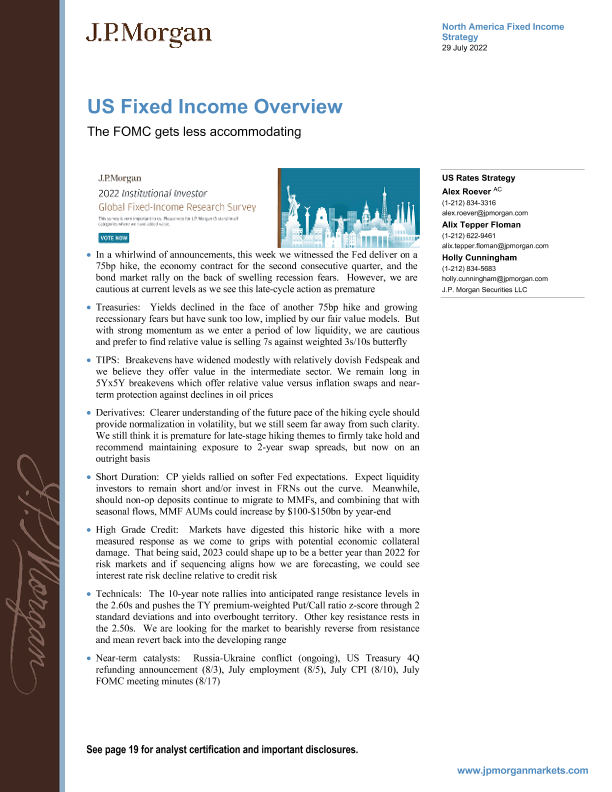 【J.P. Morgan】【20220729】US Fixed Income Overview The FOMC gets less accommodating-22页