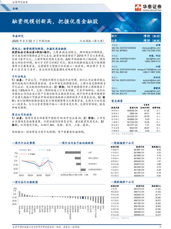 【华泰证券】【20250302】20250302-华泰证券-金融行业周报(第九周):融资规模创新高,把握优质金融股-23页