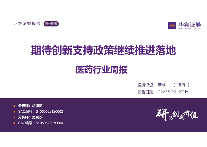 【华鑫证券】【20250302】20250302-华鑫证券-医药行业周报:期待创新支持政策继续推进落地-33页