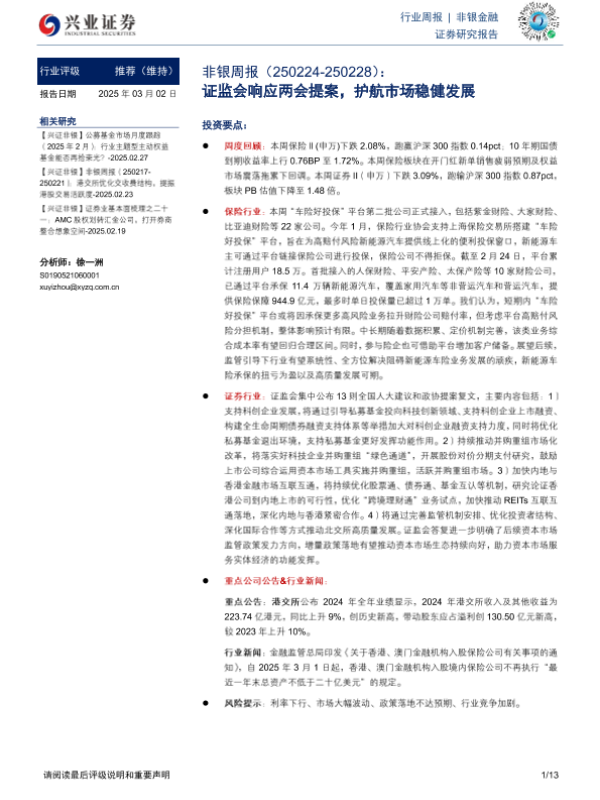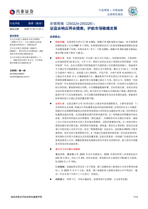 【兴业证券】【20250302】非银周报:证监会响应两会提案,护航市场稳健发展-13页