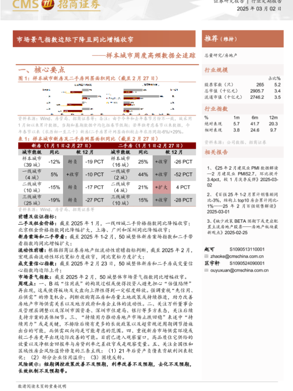 【海通证券】【20250302】房地产行业样本城市周度高频数据全追踪:市场景气指数边际下降且同比增幅收窄-12页
