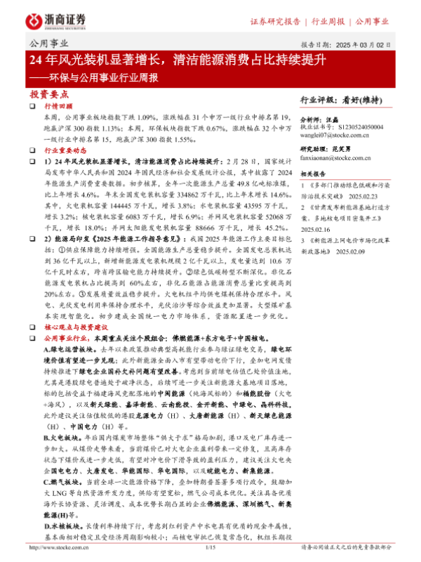 【浙商证券】【20250302】24年风光装机显著增长,清洁能源消费占比持续提升-15页