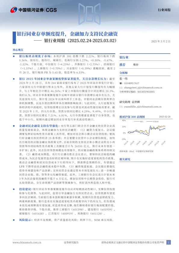 【银河证券】【20250302】银行业周报:银行同业存单额度提升,金融加力支持民企融资-18页