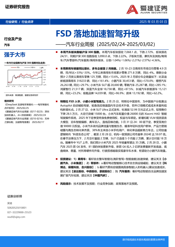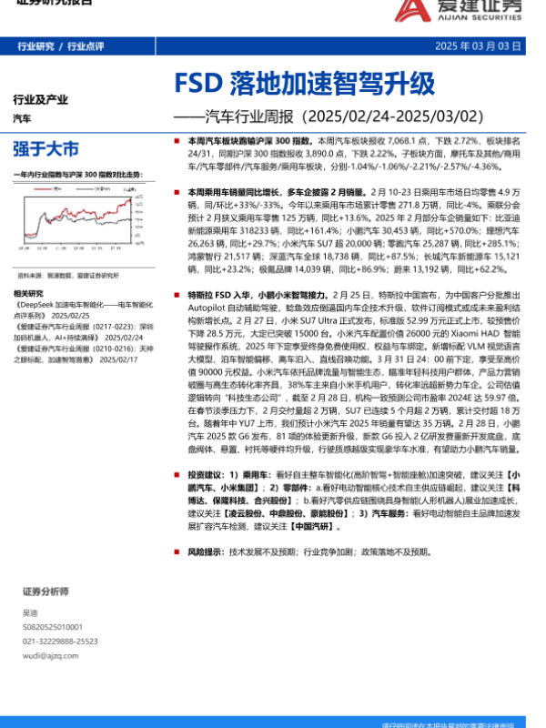 【爱建证券】【20250303】20250303-爱建证券-汽车行业周报:FSD落地加速智驾升级-19页