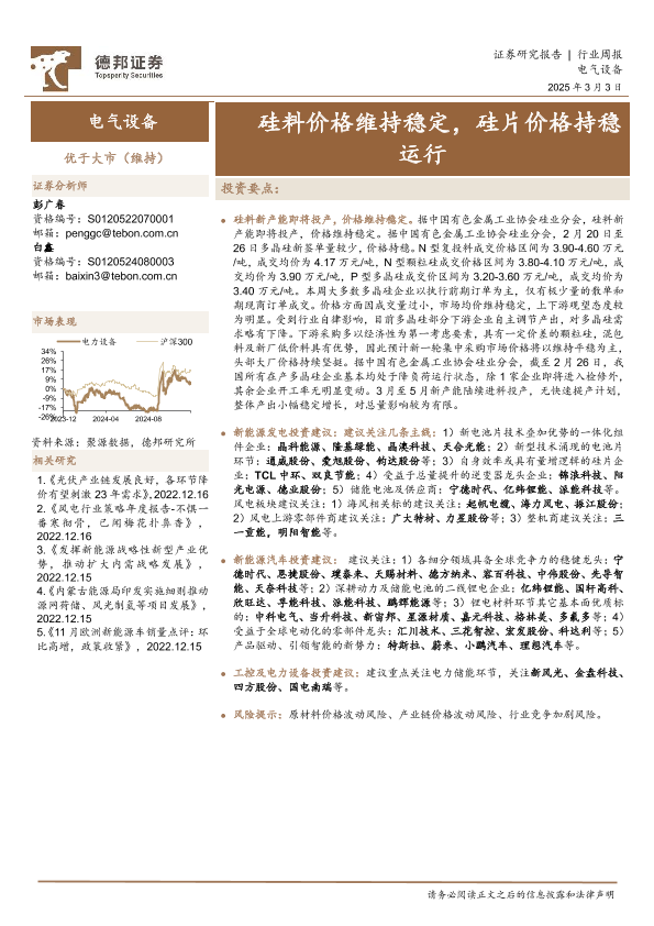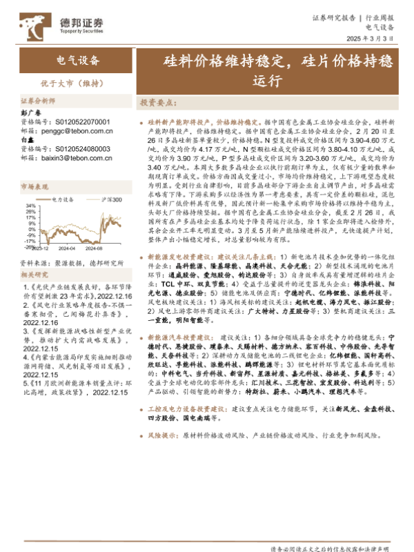 【德邦证券】【20250303】德邦证券-电气设备行业周报:硅料价格维持稳定,硅片价格持稳运行-12页