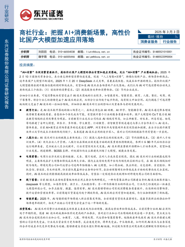 【东兴证券】【20250303】商社行业:把握AI+消费新场景,高性价比国产大模型加速应用落地-15页
