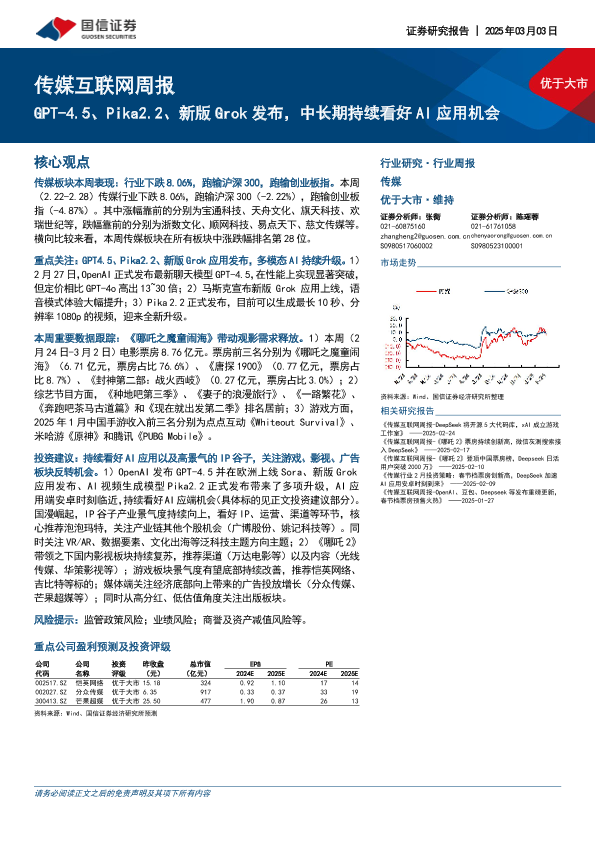 【国信证券】【20250303】20250303-国信证券-传媒互联网行业周报:GPT-4.5、Pika2.2、新版Grok发布,中长期持续看好AI应用机会-14页