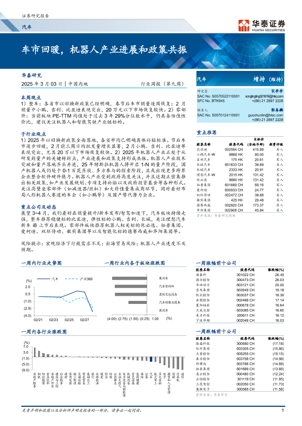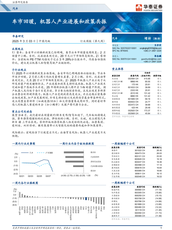 【华泰证券】【20250303】20250303-华泰证券-汽车行业周报(第九周):车市回暖,机器人产业进展和政策共振-20页