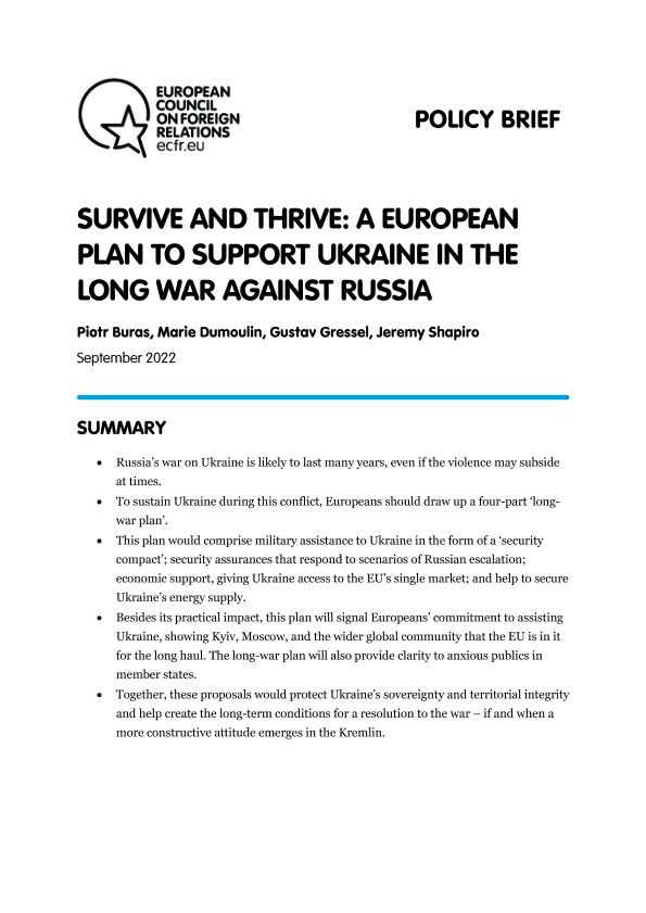 【欧洲对外关系委员会】【202209】生存和繁荣:欧洲支持乌克兰与俄罗斯长期战争的计划-18页