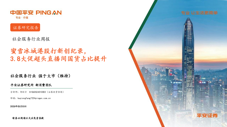 【平安证券】【20250303】20250303-平安证券-社会服务行业周报:蜜雪冰城港股打新创纪录,3.8大促超头直播间国货占比提升-13页