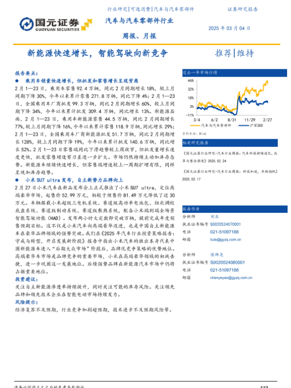 【国元证券】【20250304】汽车与汽车零部件行业周报、月报:新能源快速增长,智能驾驶向新竞争-13页
