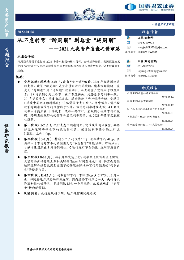 【国泰君安证券】【20220106】2021大类资产复盘之债市篇:从不急转弯“跨周期”到总量“逆周期”-15页