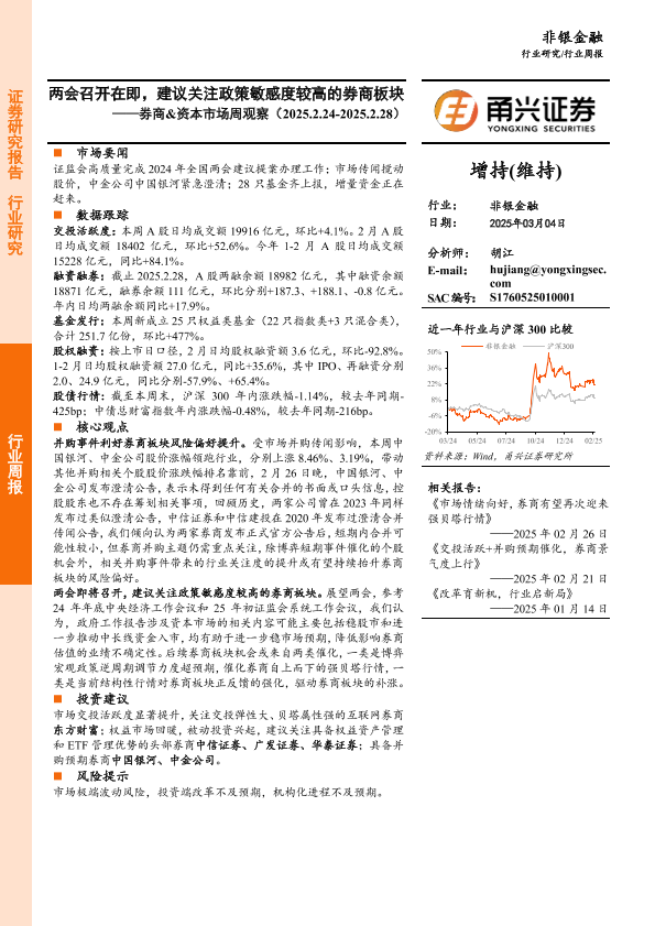【甬兴证券】【20250304】两会召开在即,建议关注政策敏感度较高的券商板块——券商&资本市场周观察-12页