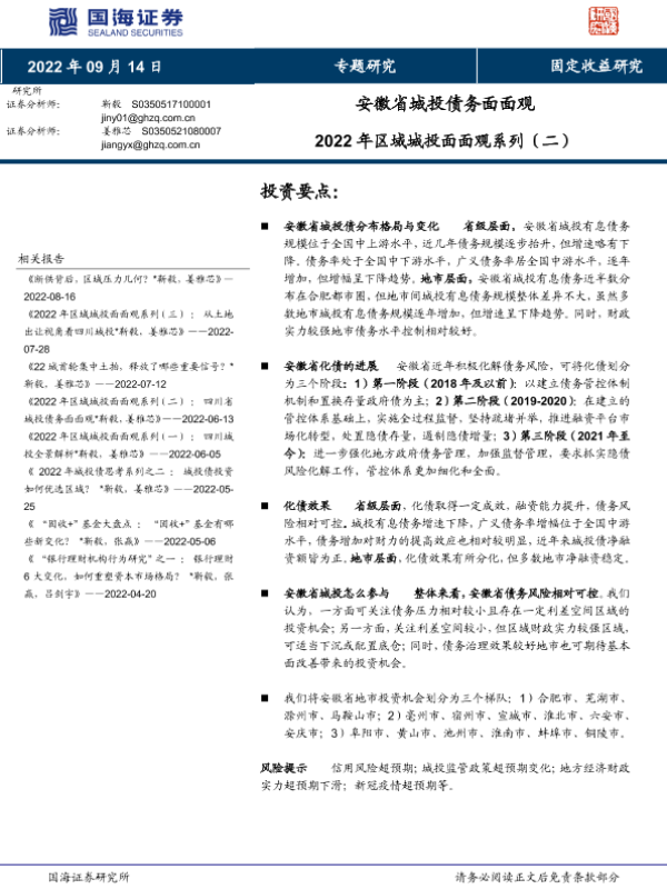 【国海证券】【20220914】2022年区域城投面面观系列(二):安徽省城投债务面面观-17页