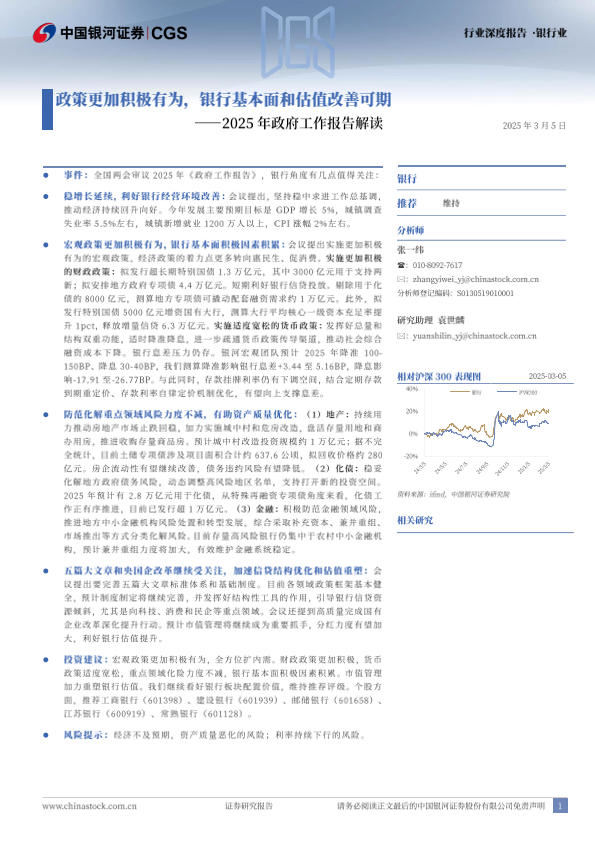 【银河证券】【20250305】2025年政府工作报告解读-政策更加积极有为,银行基本面和估值改善可期-20页