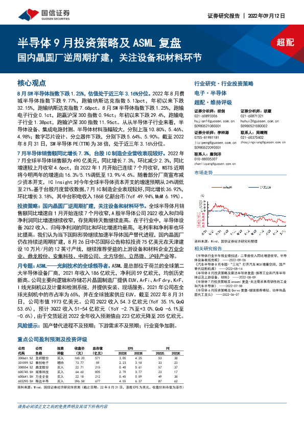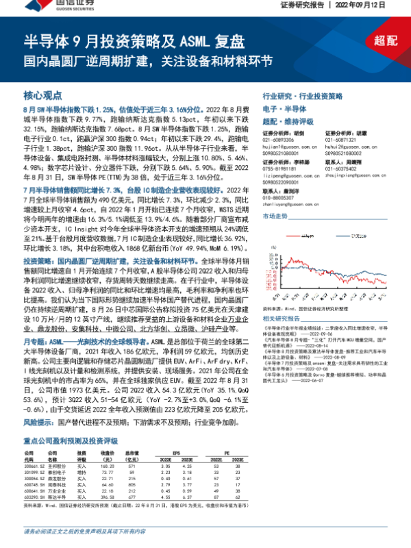 【国信证券】【20220912】半导体9月投资策略及ASML复盘:国内晶圆厂逆周期扩建,关注设备和材料环节-26页