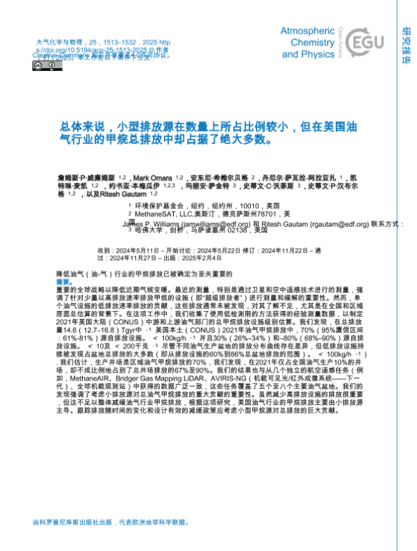 【欧洲地球科学联盟】【20250204】小型排放源导致美国石油和天然气行业大部分的甲烷排放-20页