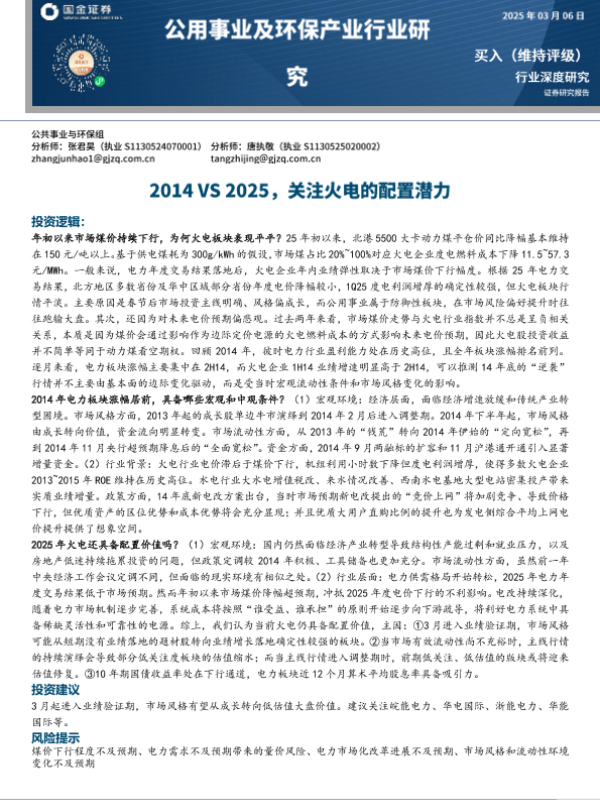 【国金证券】【20250306】2014VS2025,关注火电的配置潜力-20页