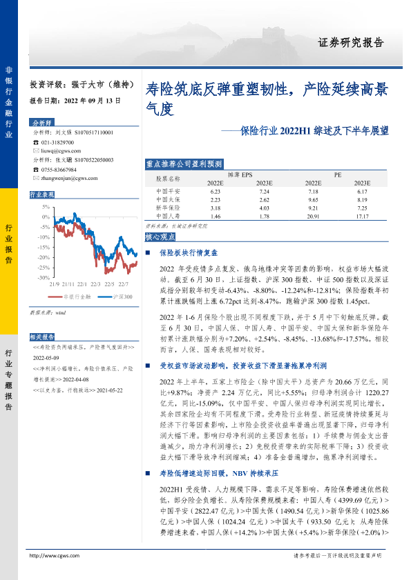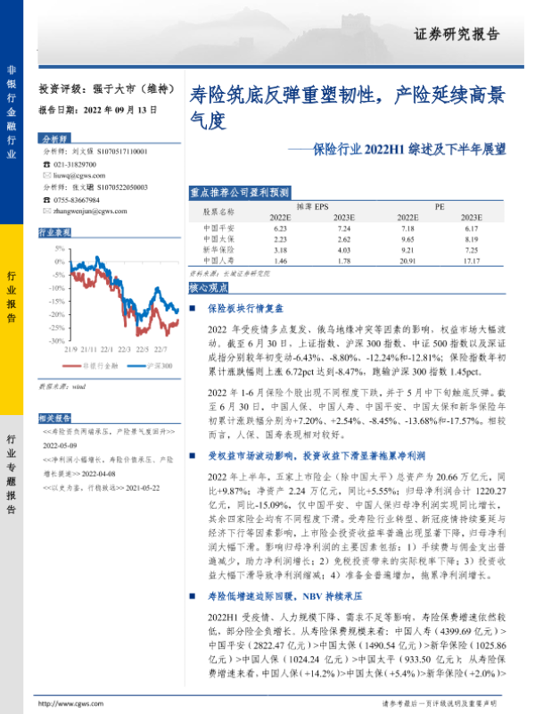 【长城证券】【20220913】保险行业2022H1综述及下半年展望:寿险筑底反弹重塑韧性,产险延续高景气度-28页