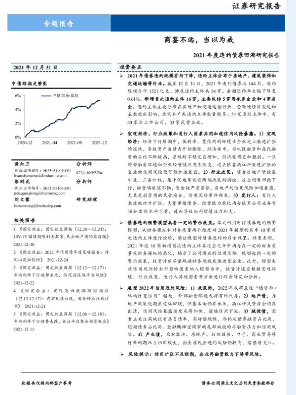 【财信证券】【20211231】2021年度违约债券回溯研究报告:商鉴不远,当以为戒-33页