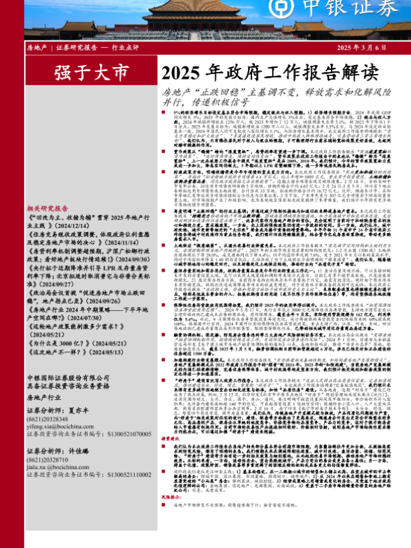 【中银证券】【20250306】2025年政府工作报告解读:房地产‘止跌回稳’主基调不变,释放需求和化解风险并行,传递积极信号-14页