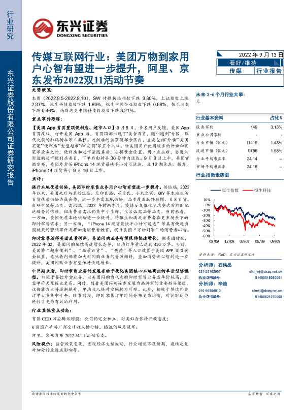 【东兴证券】【20220913】传媒互联网行业:美团万物到家用户心智有望进一步提升,阿里、京东发布2022双11活动节奏-11页
