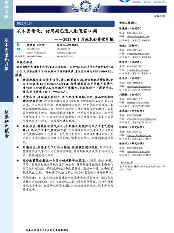 【国泰君安证券】【20220106】2022年1月基本面量化月报:基本面量化,猪周期已进入配置窗口期-23页
