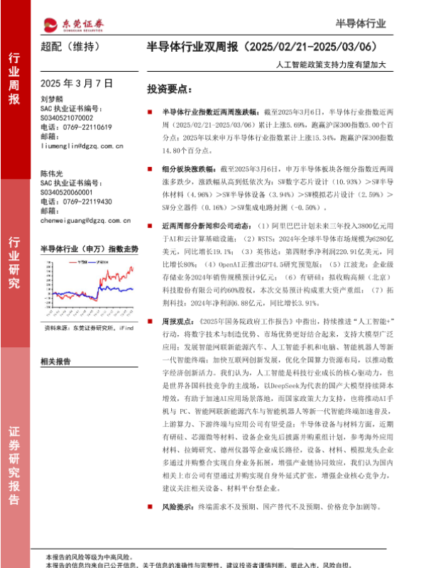 【东莞证券】【20250307】20250307-东莞证券-半导体行业双周报:人工智能政策支持力度有望加大-17页